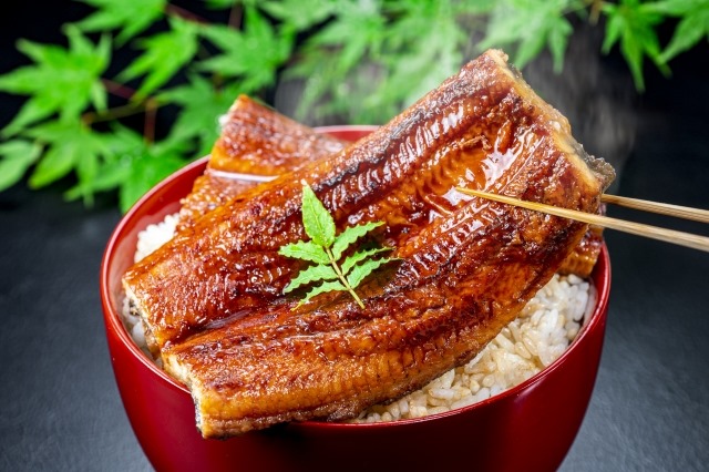 Unadon is a bowl dish where eel is basted with a sweet and spicy sauce made primarily from soy sauce and mirin, grilled, and served over white rice. Spices like sansho (Japanese pepper) are sprinkled on top. In Japan, it is considered a dish for stamina and is especially eaten a lot in the summer. It’s pricey and is treated as a high-end dish.