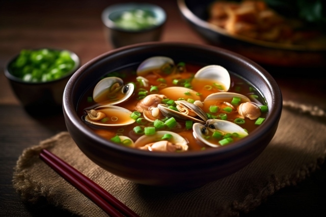 일본 요리의 대표적인 수프로, 다시에 미소로 맛을 내고, 채소나 두부, 해산물 등을 재료로 합니다.