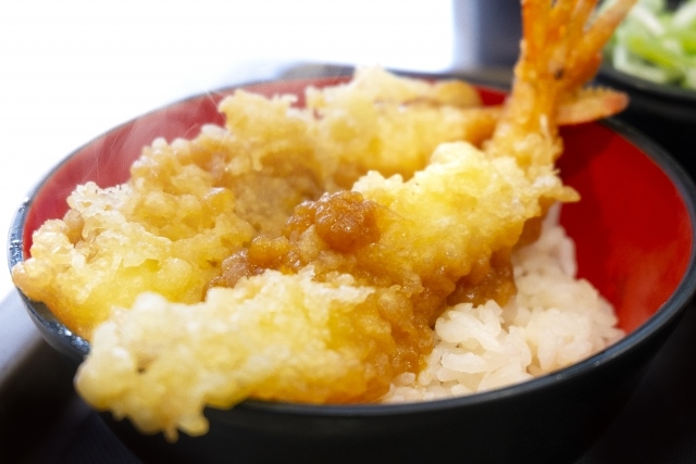 Tendon is a dish where tempura, which is seafood or vegetables coated with flour and egg and then deep-fried, is served on top of rice. The tempura and rice are flavored with a sweet and savory sauce made from soy sauce, mirin, and sugar.