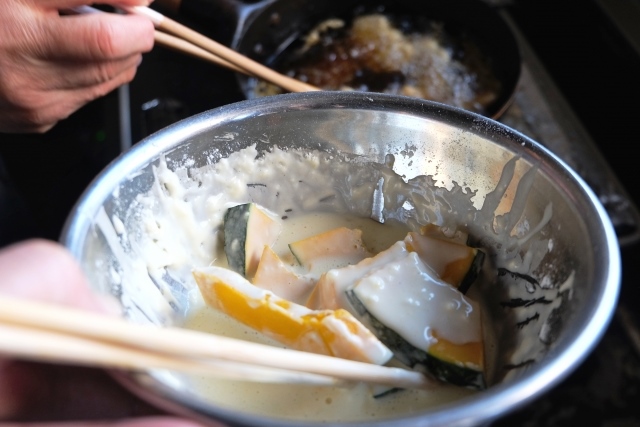 Unique examples of tempura include those made by coating boiled eggs and ice cream with wheat flour and chicken eggs, then frying them.