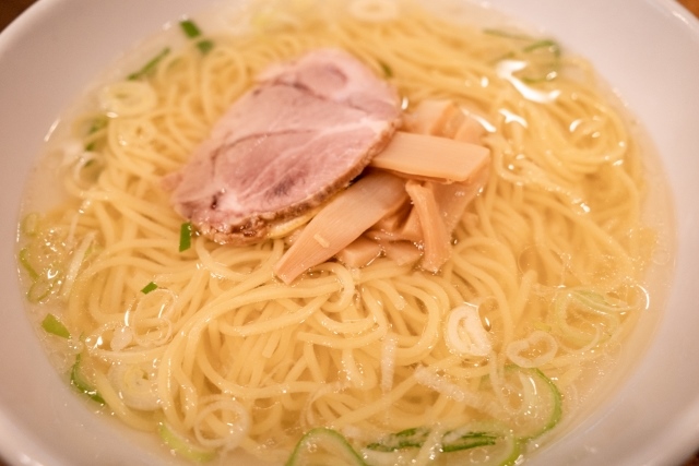 Salt ramen is made by making a soup based on salt and boiling kelp and chicken bones. The color of the soup is close to transparent, different from other soy sauce, pork bone, and miso. Ingredients also include seafood (fish, shellfish, etc.), making it a light-tasting ramen.