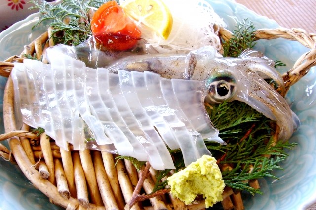 The Aoriika, or Bigfin Reef Squid, is in season during the spawning period from spring to summer. Its flesh is elastic and has a sweet taste. Because the catch in Japan is small, imported products mainly circulate in the market.