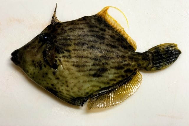 The season for thread-sail filefish is from summer to winter. It is characterized by its white meat with less fat and a crunchy texture. Because the meat is elastic, it is thinly sliced when made into sashimi.