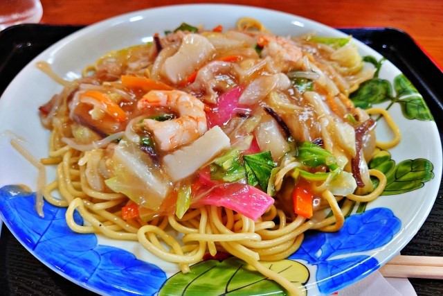 Sara Udon is a unique type of udon eaten in Nagasaki Prefecture in the Kyushu region. It originated in 1899 when the owner of a Chinese restaurant who invented Nagasaki Champon created it as a soup-less Champon. Originally, Sara Udon used thick noodles, but recently some versions use thin, dried noodles. Regardless of the noodle thickness, the toppings remain the same, and the dish is referred to as either thick-noodle Sara Udon or thin-noodle Sara Udon.