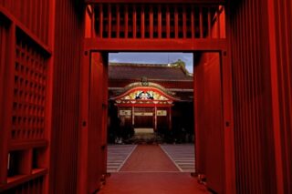 平安時代の著名な学者、政治家、詩人である菅原道真を祀っている太宰府天満宮は九州で最大級の規模を誇る神社であり、全国約12000の天満宮の中心的な存在です。道真は陰謀により九州の大宰府に左遷され、その地で亡くなりました。彼の亡骸を運んでいた牛がこの地で動かなくなり伏せたことが、神社建立の起源とされています。太宰府天満宮は、学業祈願、厄除け、家内安全などにご利益があるとされており、その境内には道真ゆかりの6000本もの梅があり、四季折々に美しい景観を楽しむことができます。