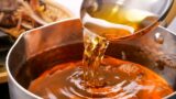 간장은 대두, 밀, 소금, 고배로 만든 발효 조미료로, 그 짙은 갈색과 맛이 특징