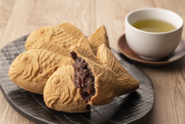 태국 구이는 밀가루 반죽에 안코(주로 팥과 설탕으로 만드는 페이스트)를 넣어 구운 생선 모양의 팬케이크 같은 와가시입니다. 겉은 바삭한 식감이고, 안쪽의 안코는 부드럽고 달콤합니다.
