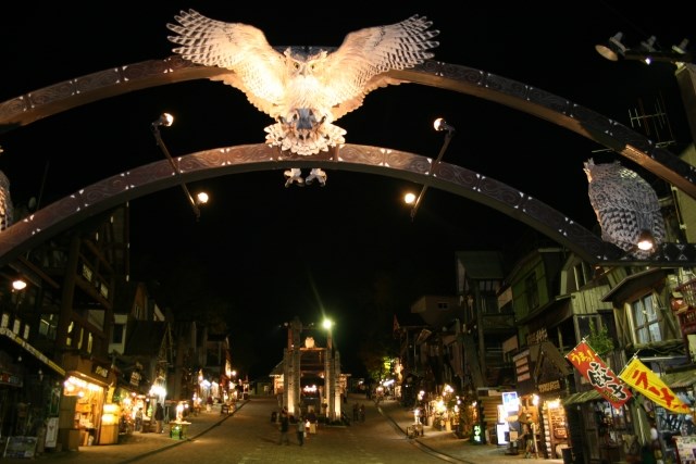 아칸호의 온천 거리 메인 스트리트는 몽환적이고 아름답게, 민속품 가게의 네온 라이트가 영화 마법사의 가게 같은 분위기를 연출하고 있었습니다.