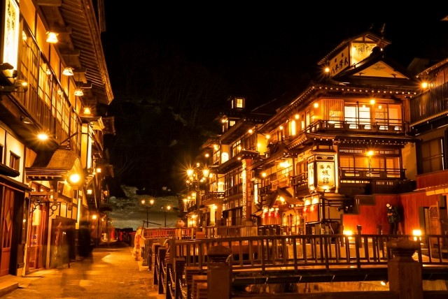銀山温泉は特に雪が降った夜が最も美しく、外国人旅行者による写真撮影で賑わいます。雪に覆われた町が照明で一層引き立ちます。