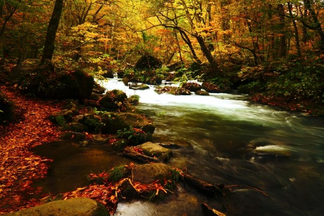 奥入瀬渓流(Oirasekeiryu)は四季折々の自然が広がり、特に春の新緑や秋の紅葉が有名です。新緑は5月から6月、紅葉は10月中旬から下旬頃がおすすめの時期です。