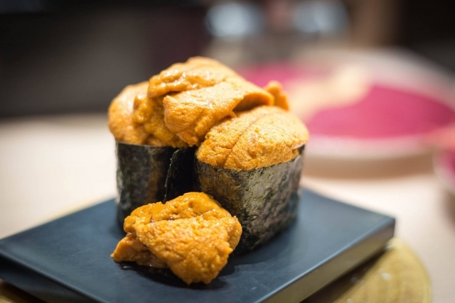 海膽是食用的卵巣或精巣。在軍艦壽司中特別受歡迎,被認為是高級壽司之一。其風味濃郁,與其他魚、貝、魚卵完全不同。