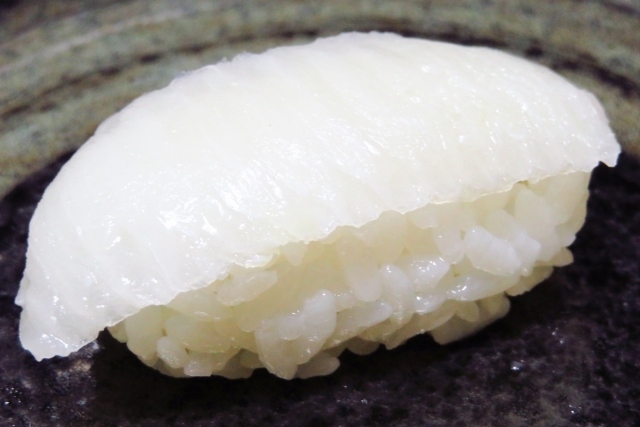 舌鰨是平魚或鰈魚的背鰭或尾鰭的肌肉部分。這些魚總是在運動背鰭和尾鰭,所以肌肉很發達。因此,它有一種有嚼勁的獨特口感。一般來說,在高級壽司店,會使用平魚的舌鰨,而在價格較低的迴轉壽司或壽司便當中,則會使用鰈魚的舌鰨。