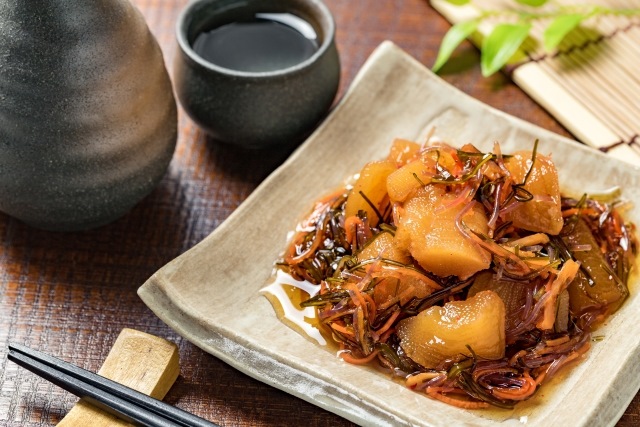 在日本的海鲜料理中,除了生鱼片和寿司,还有用章鱼、鱿鱼、海藻、鱼卵等海鲜制成的清爽冷菜。这些菜肴可以作为与酒同享的小吃,或作为日常餐点的一部分。
