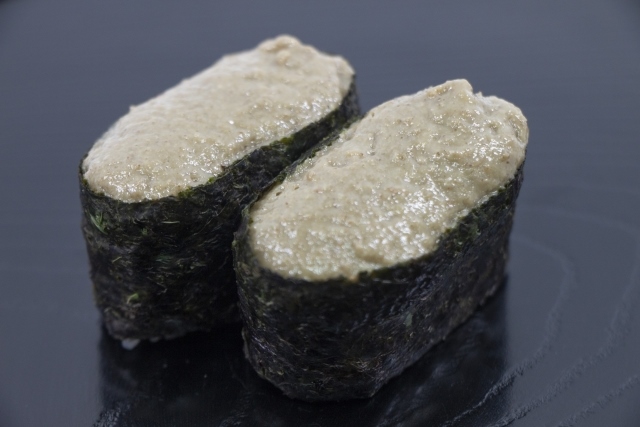 海胆不仅吃卵巢,还吃精巢。在军舰寿司中尤其受欢迎,被认为是一种高级寿司。其味道浓郁,与其他鱼类、贝类、鱼籽完全不同。