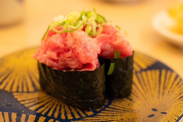 韭菜金枪鱼使用的是金枪鱼的剁碎的肉。价格适中,因其美味,在寿司便当和回转寿司中特别受欢迎。