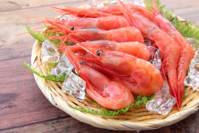 甜虾主要在北海道到北陆地区捕捞。主要是生食的虾,作为寿司和刺身很受欢迎。其特点是口感柔软,味道甜美。