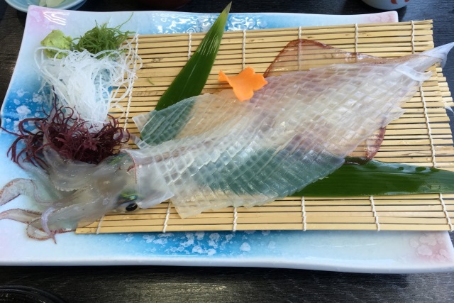 乌贼刺身也很受欢迎。特别是在北海道,将一只乌贼完整地做成刺身的“乌贼的姿造”是一种名点。