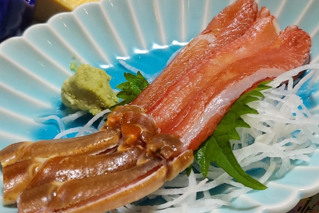 蟹的新鲜度下降得很快,所以以刺身的形式食用的机会相对较少。它的特点是有甜味,口感美味。