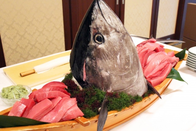 金枪鱼是刺身的象征,非常受欢迎。有些活动会展示大型金枪鱼的烹饪过程。