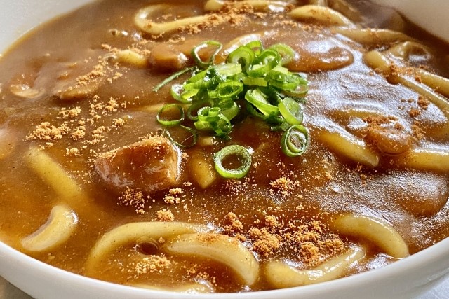 咖喱乌冬面是将日本人喜欢的咖喱和乌冬面结合的,可以说是与从前的乌冬面完全不同的乌冬面。虽然也有咖喱荞麦面,但咖喱乌冬面更常见。