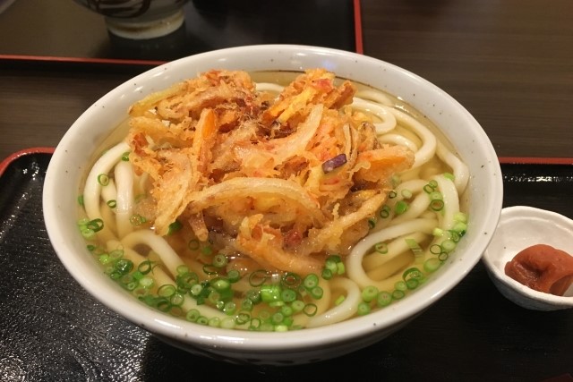 这是将小虾或切碎的蔬菜等裹上面粉油炸的天妇罗。一般来说,比虾等天妇罗乌冬面更便宜。口感也很好,价格适中,是那些想要品尝天妇罗乌冬面的人的最佳选择。