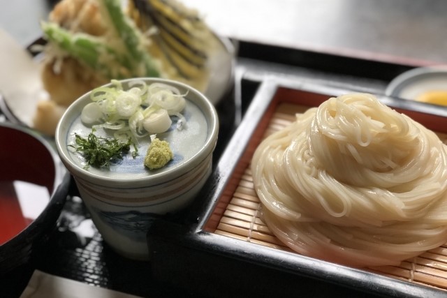 稻庭乌冬面起源于东北地区的秋田县,是日本三大乌冬面之一,非常有名。面条比普通乌冬面要细很多,口感也很特别。秋田县自古以来就有人食用稻庭乌冬面,1972年公开了一直被视为秘传的制作方法,从而使稻庭乌冬面在全国范围内广为人知。